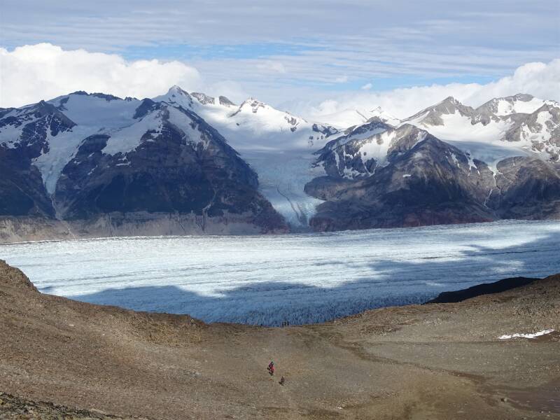 Kan het nog perfecter? Een stralende dag, weinig wind en geweldige uitzichten vanaf de John Garner Pas op de immense Grey gletsjer. In mijn hoofd weet ik dat ik enorm heb genoten en later zal ik zeker met plezier terugkijken op de foto's en filmpjes die ik maakte. Maar ik ben kapot. Mijn voeten doen zeer en ook mentaal zit ik er goed doorheen. Wat een enorm heftige dag...